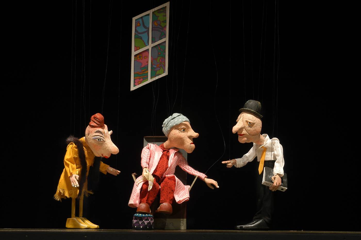 Der eingebildet Kranke Komödie von Molière als Marionettenspiel Ein alter Grantler will mit dem Kopf durch die Wand. Erstaunlich aktuell präsentiert sich Molières Komödie über Gesundheitswahn, Geltungssucht, Hypochondrien und Geldgier. Am Ende finden zwei junge Liebende ihr zartes Glück. Die pointierte Übersetzung in bairische Sprache betont Witz und Irrwitz. |